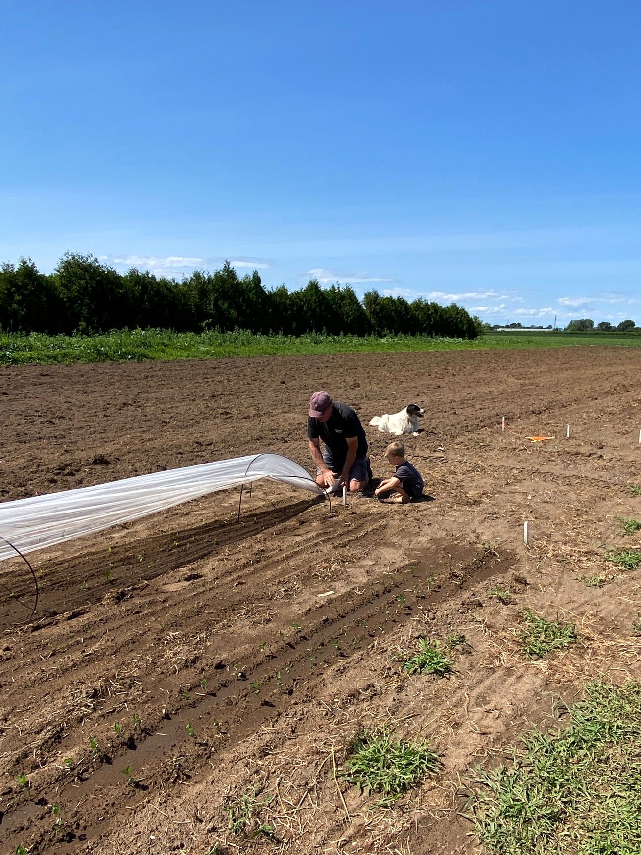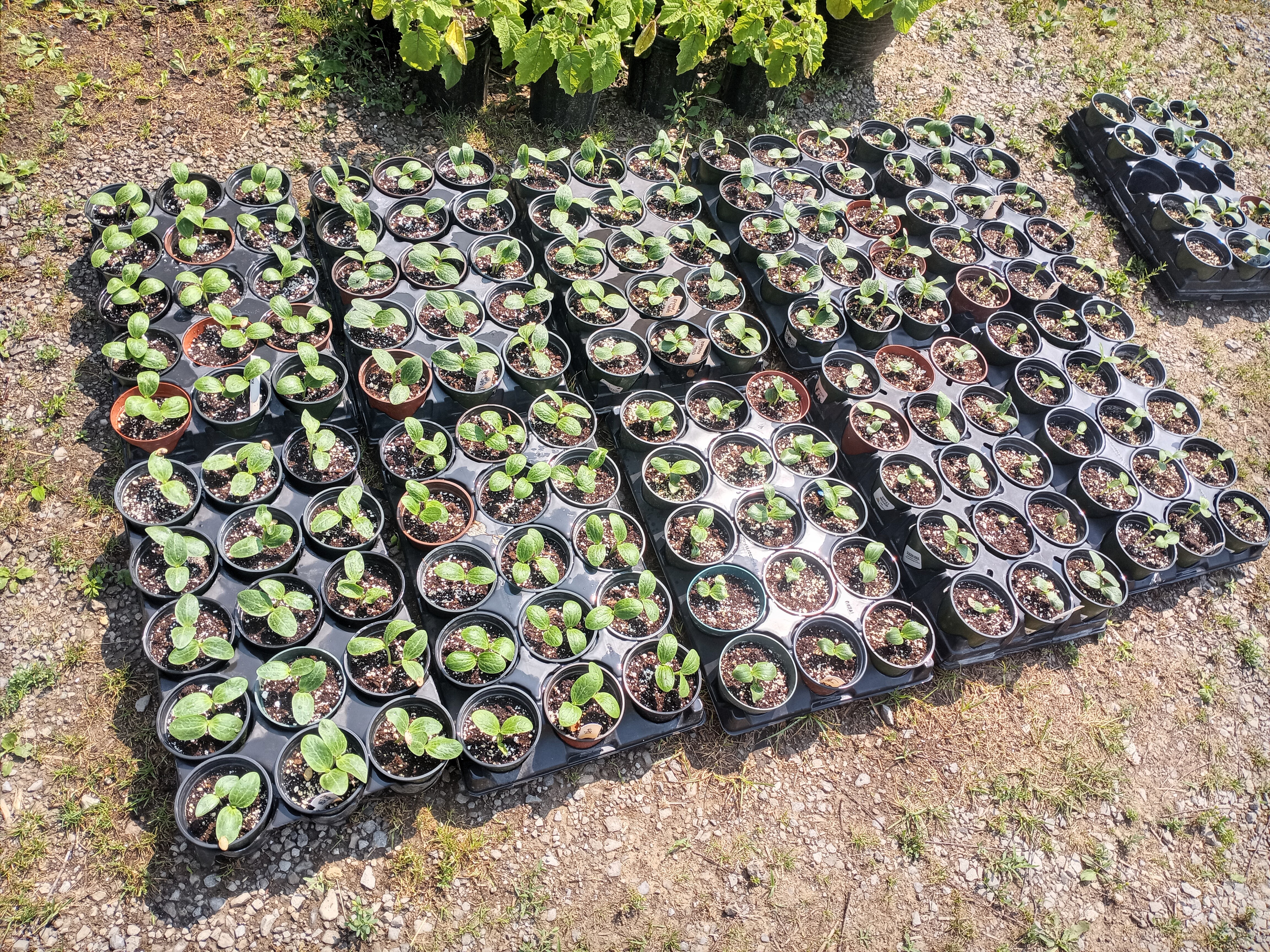 The question today was whether to transplant vegetables or not. Two trailers full of seedlings ready to go – but the weather was so hot.