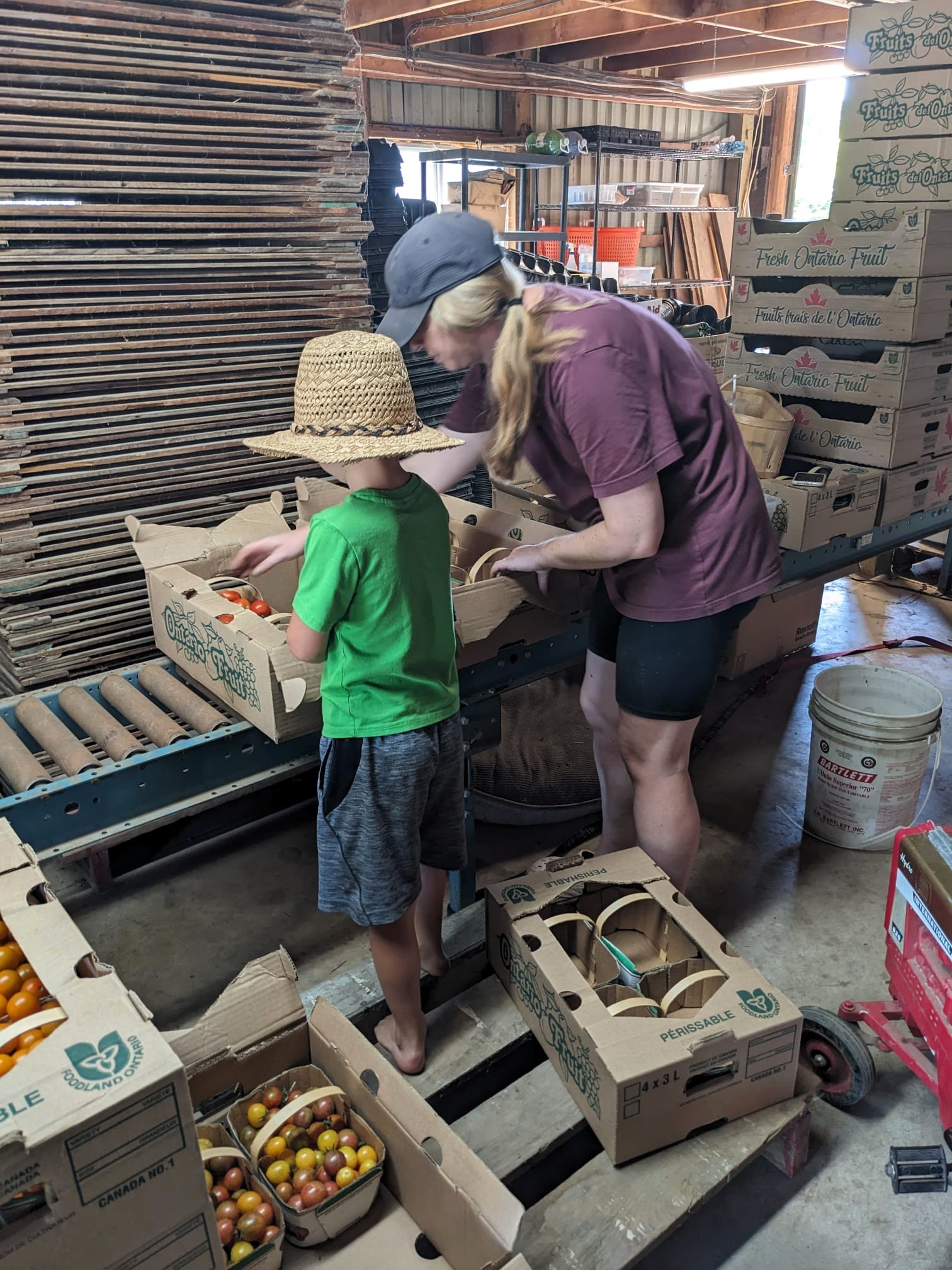 Helping Aunt Amy sort tomatoes.