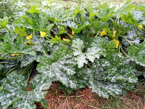 Our last planting of zucchini is going strong! The expectation is that they will keep producing almost until the winter squash is ready – in another month or so.