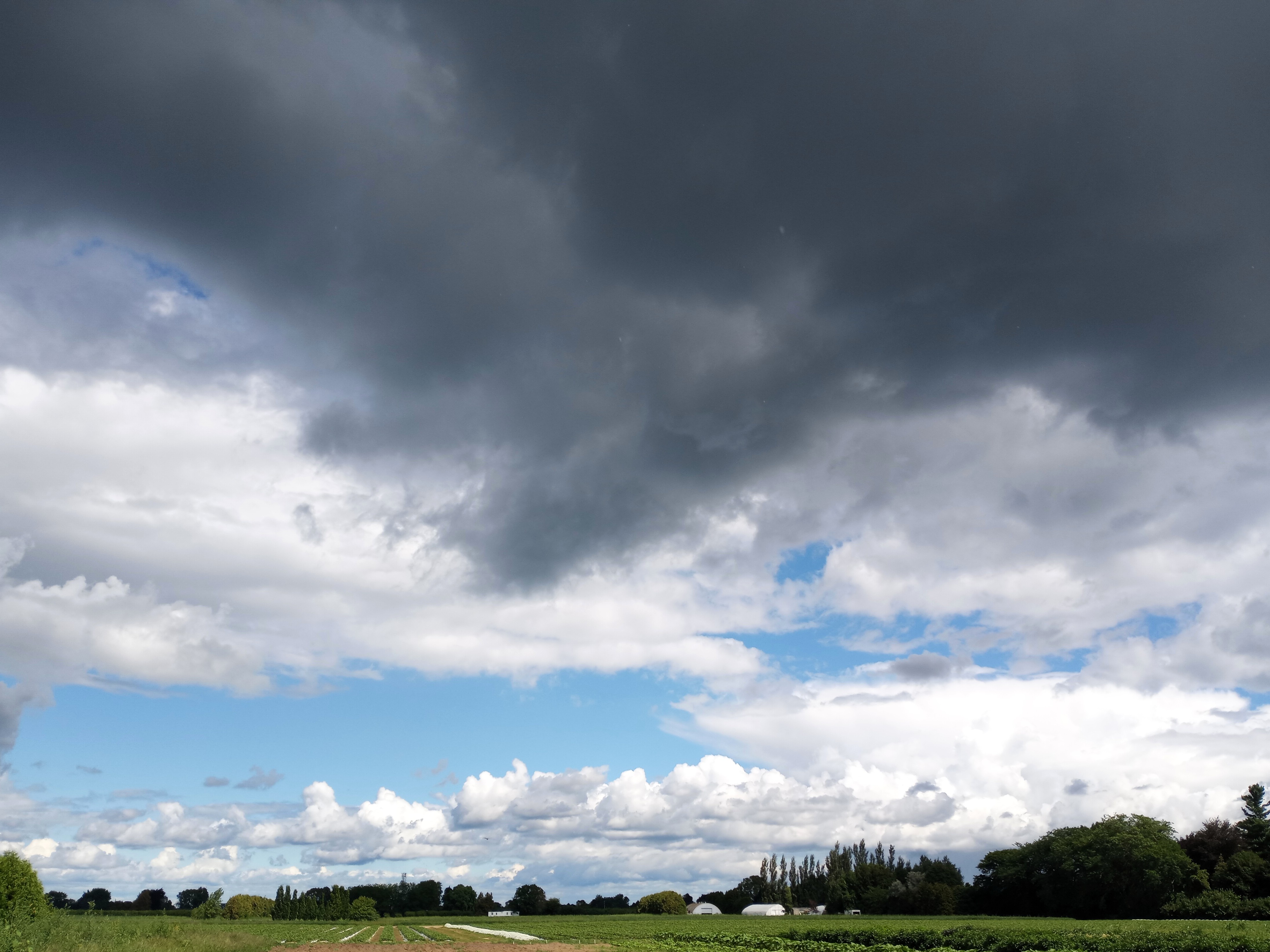 The 1st taste of blackberries was a surprise in the box last week. But now you can expect blackberries for the next few weeks at least. For those not familiar with blackberries, they are a bit sweet & a bit tart. If they aren’t quite ripe they can be sour. Too ripe and they are soft & mushy – but incredibly sweet. We try to pick them as ripe as possible but still firm. Unlike raspberries, blackberries are not hollow but have a soft edible centre core. The only way to eat a blackberry is to pop the whole thing in your mouth. Try to take a small bite and you will be covered in dark, staining juice. While best eaten fresh, blackberries also make great jam, juice, sauce & ice cream. Please note that we do use pesticides on our blackberries, for the spotted wing drosophila. This invasive vinegar fly has the potential to cause extensive damage to many fruit crops, especially soft and dark coloured fruit – like blackberries. It is found throughout much of southern Ontario and most of the fruit-growing areas of North America, and has become a chronic pest in berry and tender fruit crops. There are cultural practices that we use to help reduce the insect populations, but the most effective control is chemical. So we spray regularly to protect our blackberries & keep them free of worms.
